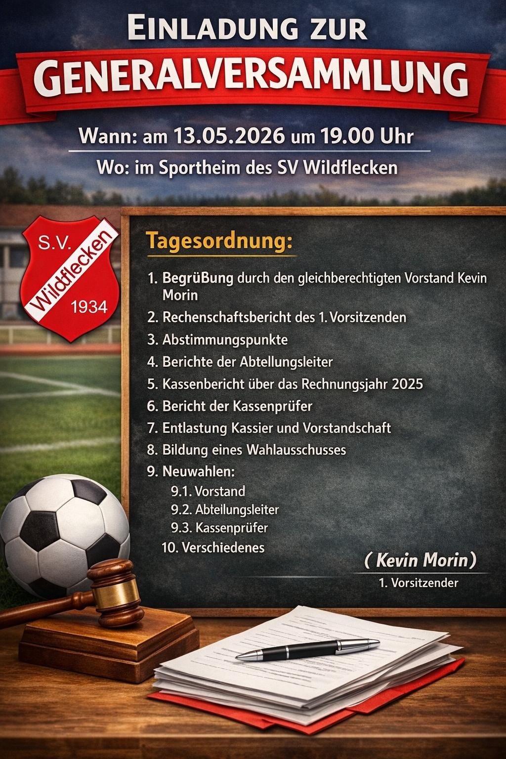 Generalversammlung – SV Wildflecken + Zu Google Kalender hinzufügen + iCal / Outlook export Datum Mai 13 2026 Uhrzeit 19:00 Veranstaltungsort Sportheim Wildflecken Am Sportplatz 1, Wildflecken Kategorie Versammlung Veranstalter SV Wildflecken Website http://www.sv-wildflecken.de/ Teile diese Veranstaltung